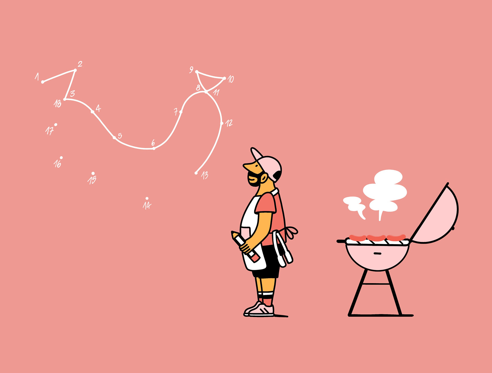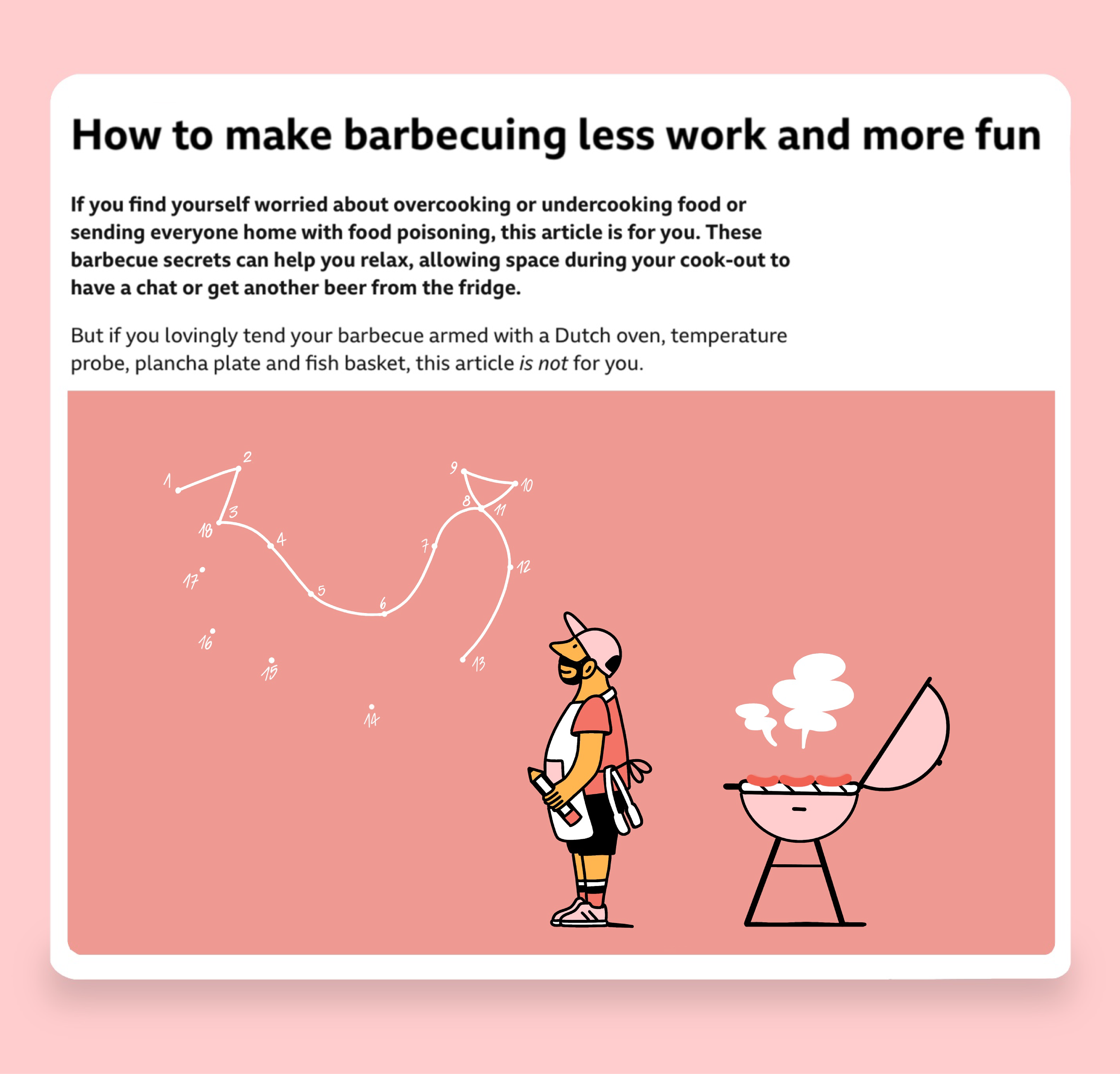 This illustration is inspired by the BBC's article "How to make barbecuing less work and more fun".