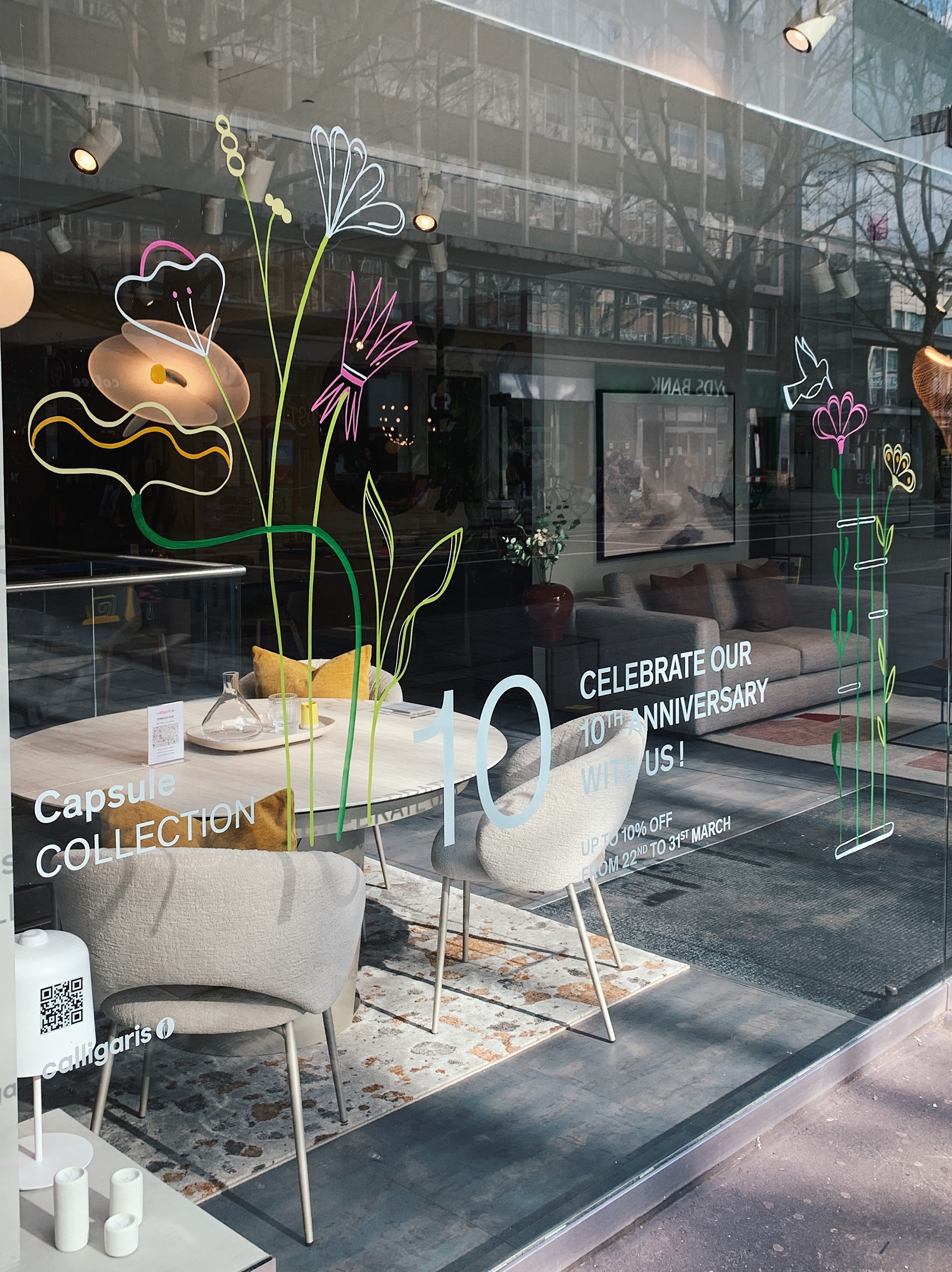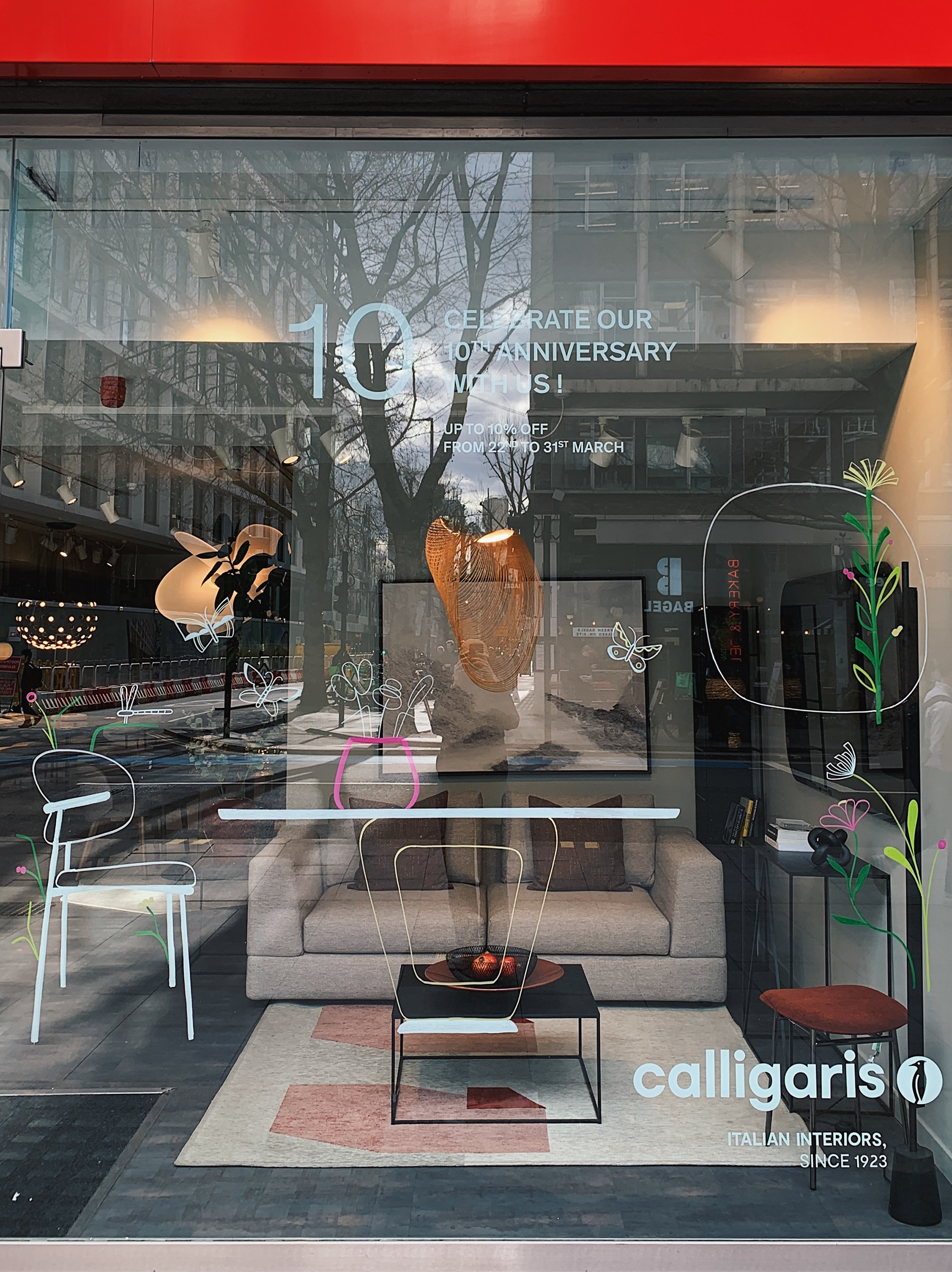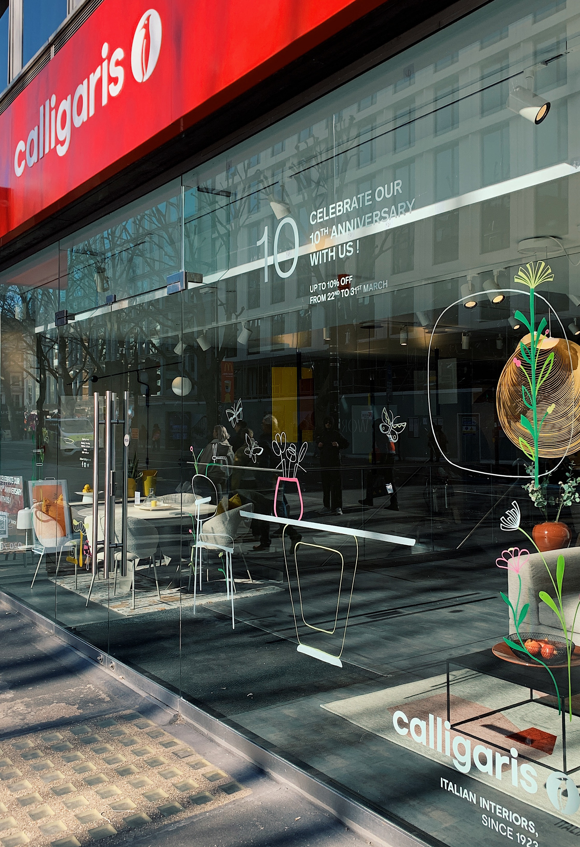 Live painting on window during the Calligaris London flagship store's 10th anniversary event.
