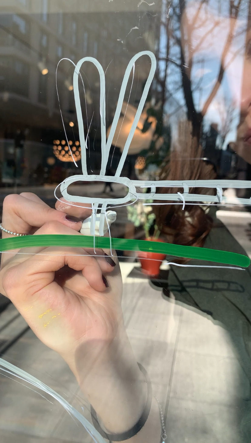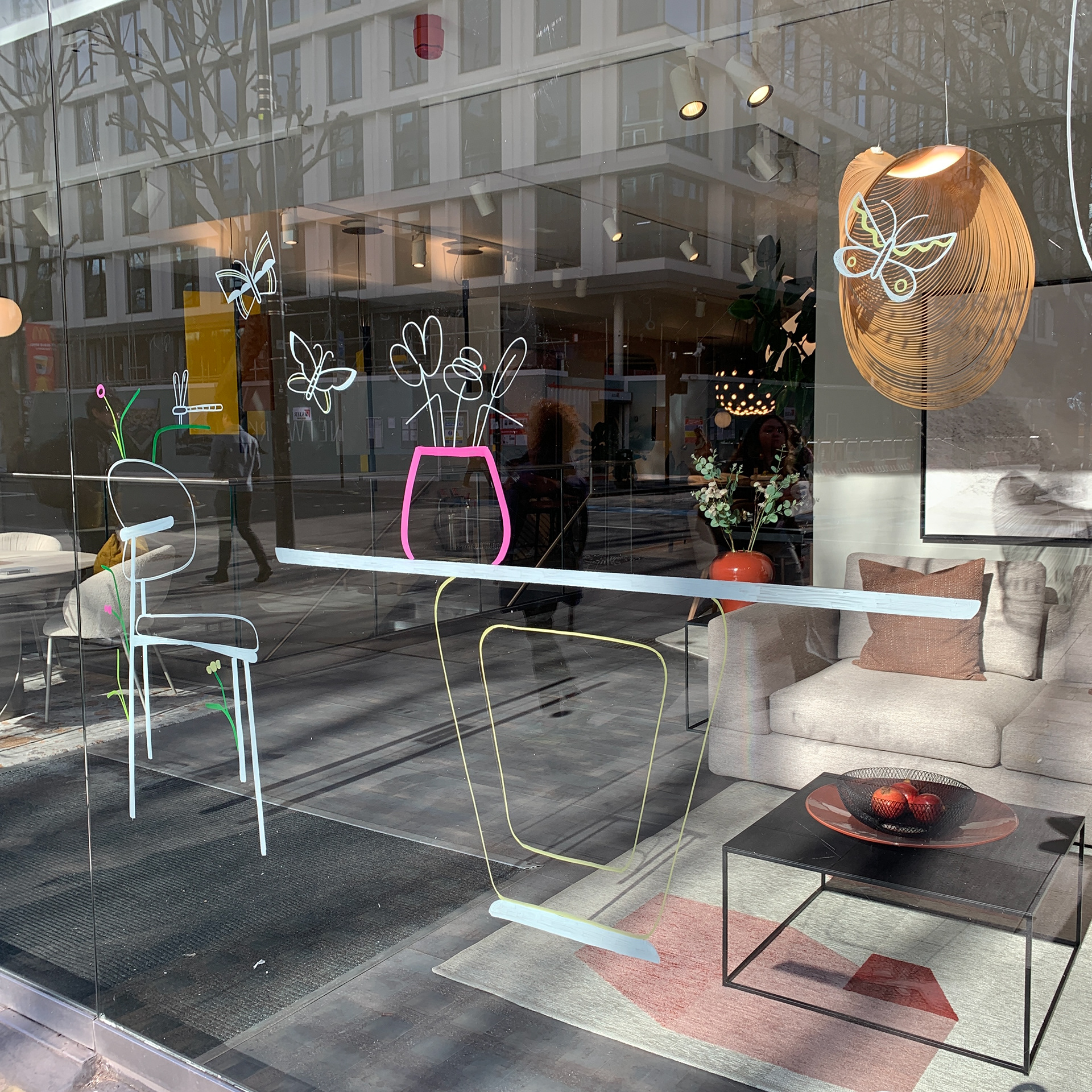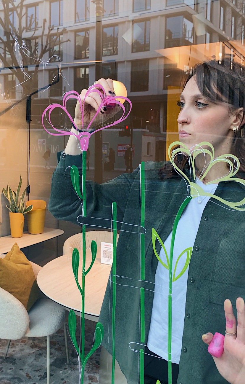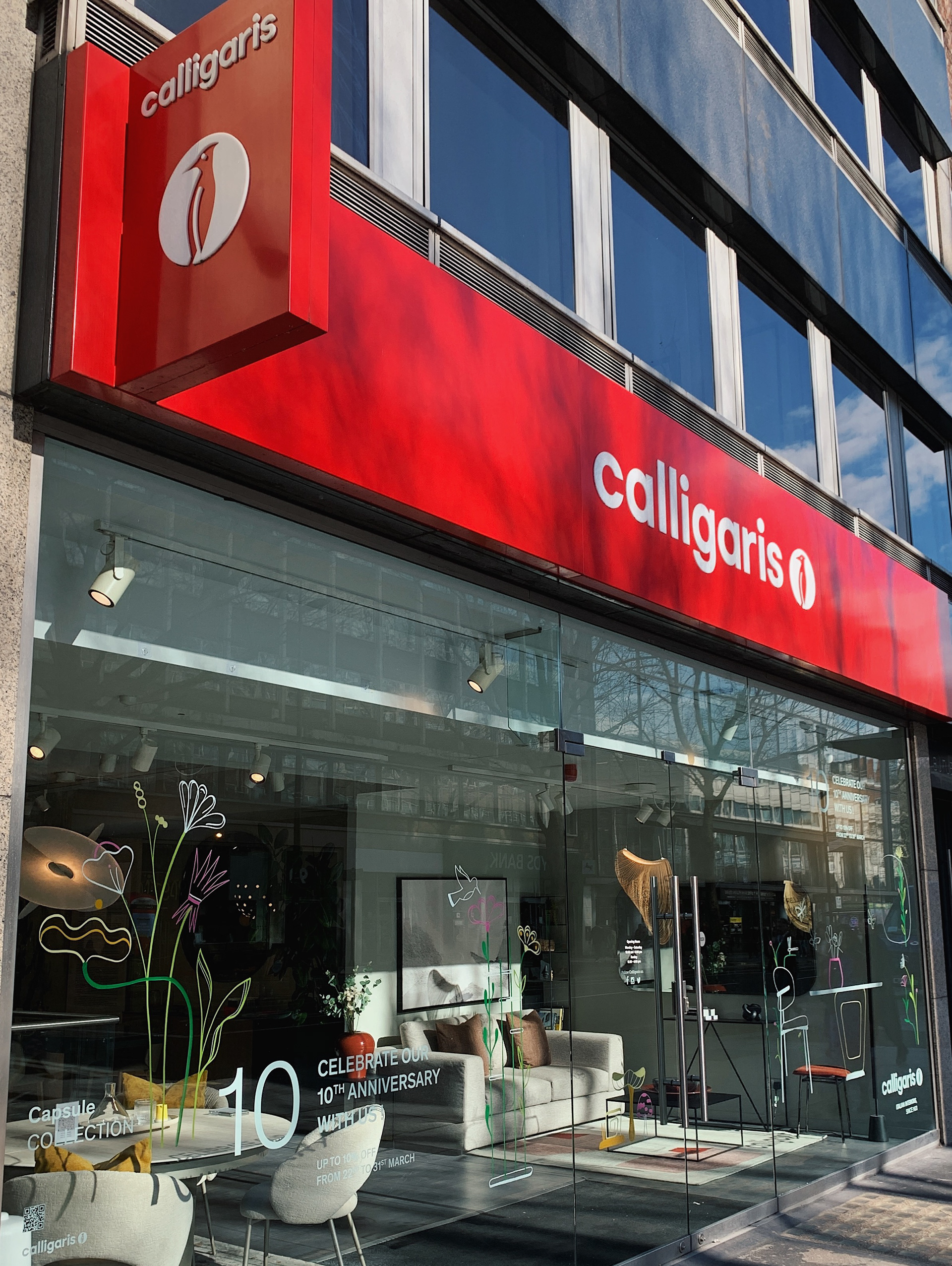 Live painting on window during the Calligaris London flagship store's 10th anniversary event.